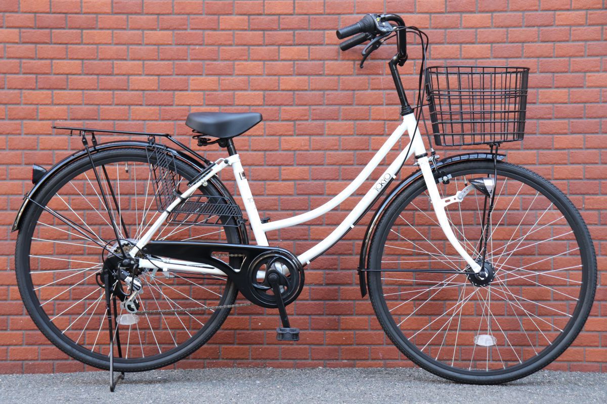 Sixtyone:ゴーレム 《車体情報》 27インチ オートライト 両足スタンド バンドブレーキ リング錠 6段変速 ブラックリムを採用したデザイン性の高い一台。 オートライト・6段変速機付きで、通学や通勤にもオススメです。 ※随時、色やデザインの変更があります。